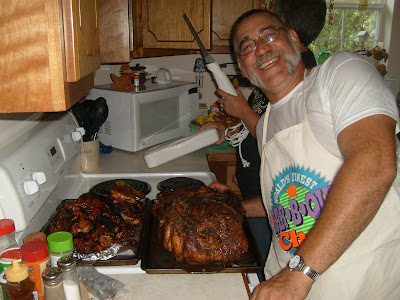 ...and the end result after hours outside with the smoker, boiler, and grill usually includes...
